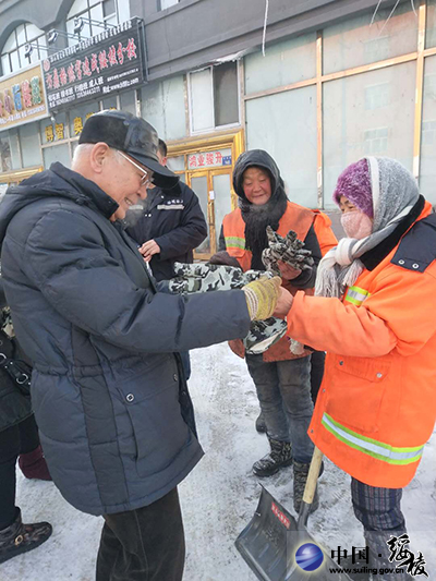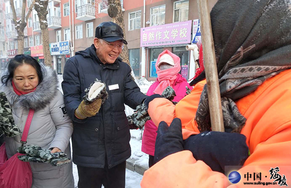 1月18日,县孔子学会志愿服务队开展慰问环卫工人活动,志愿者们来到环卫工人们的工作地点,为他们送去军用五指手套等劳动保护用品,让环卫工人们深深感受到社会的爱心温暖。志愿服务队员纷纷表示,美好的生活环境,离不开环卫工人们的辛勤付出,值得社会各界的尊重与关注。县孔子学会志愿服务队旨在通过慰问环卫工人活动,影响和带动社会上更多的人关心环卫工人生活,从自身做起,爱护环境,为建设“小富美”旅游名县共同努力!(编辑:骄阳)