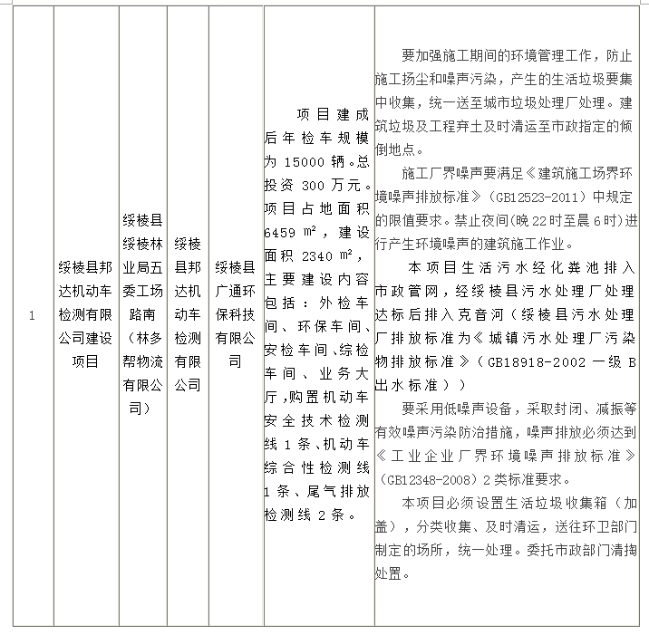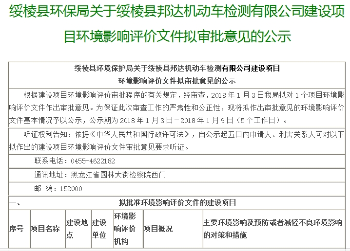 绥棱县环保局关于绥棱县邦达机动车检测有限公司建设项目环境影响评价文件拟审批意见的公示