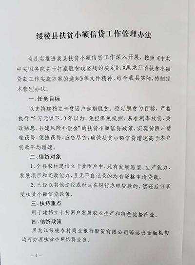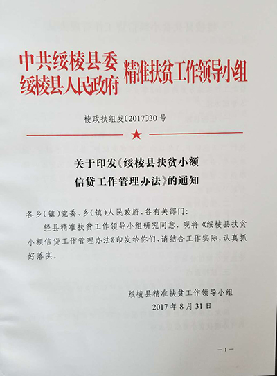 关于印发《绥棱县扶贫小额信贷工作管理办法》的通知