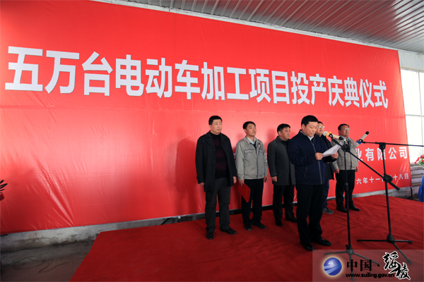 11月28日,县委副书记、县长杨春辉出席绥棱诸江新能源车业有限公司五万台电动车加工项目投产庆典仪式,并为首台电动车下线剪彩。县政府副县长高阳主持庆典仪式。诸江新能源车业有限公司总经理孙世伟,电动车经销商代表、市场监督管理局领导分别致辞。