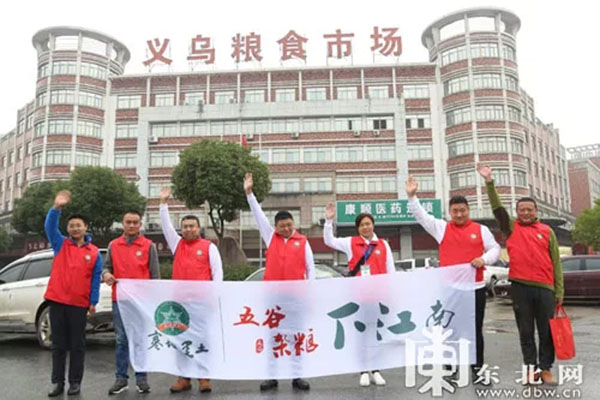 绥化“五谷杂粮”下江南绥棱团队冒雨推介进入义乌粮食市场
