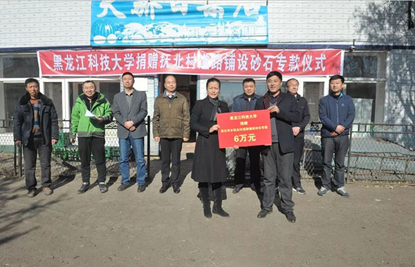 同时,省直扶贫队黑龙江科技大学驻村工作队在泥尔河乡抚北村举行捐赠道路铺设砂石专款仪式,黑龙江科技大学此次捐赠的6万元专款将用于全村9个自然屯、13个村民组的道路铺设。